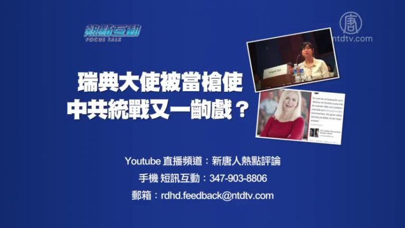 【新唐人2019年02月20日訊】近日,媒體披露瑞典駐華大使林戴安,安排桂民海女兒與兩名「中國商人」 見面,引發輿論譁然。會面中桂民海女兒被威脅不要再替父親發聲。瑞典外交部已將大使召回調查。而其中一名「中國商人」被揭是江蘇一家企業的董事長,但另有南京大學校董的頭銜,且與中共駐瑞典大使有來往。而此前加拿大駐華大使為孟晚舟發聲遭解職。為何接連發生他國外交官為中共做事?此事件中的「中國商人」真實身份為何?中共在外交領域的統戰是否已頗為深廣?