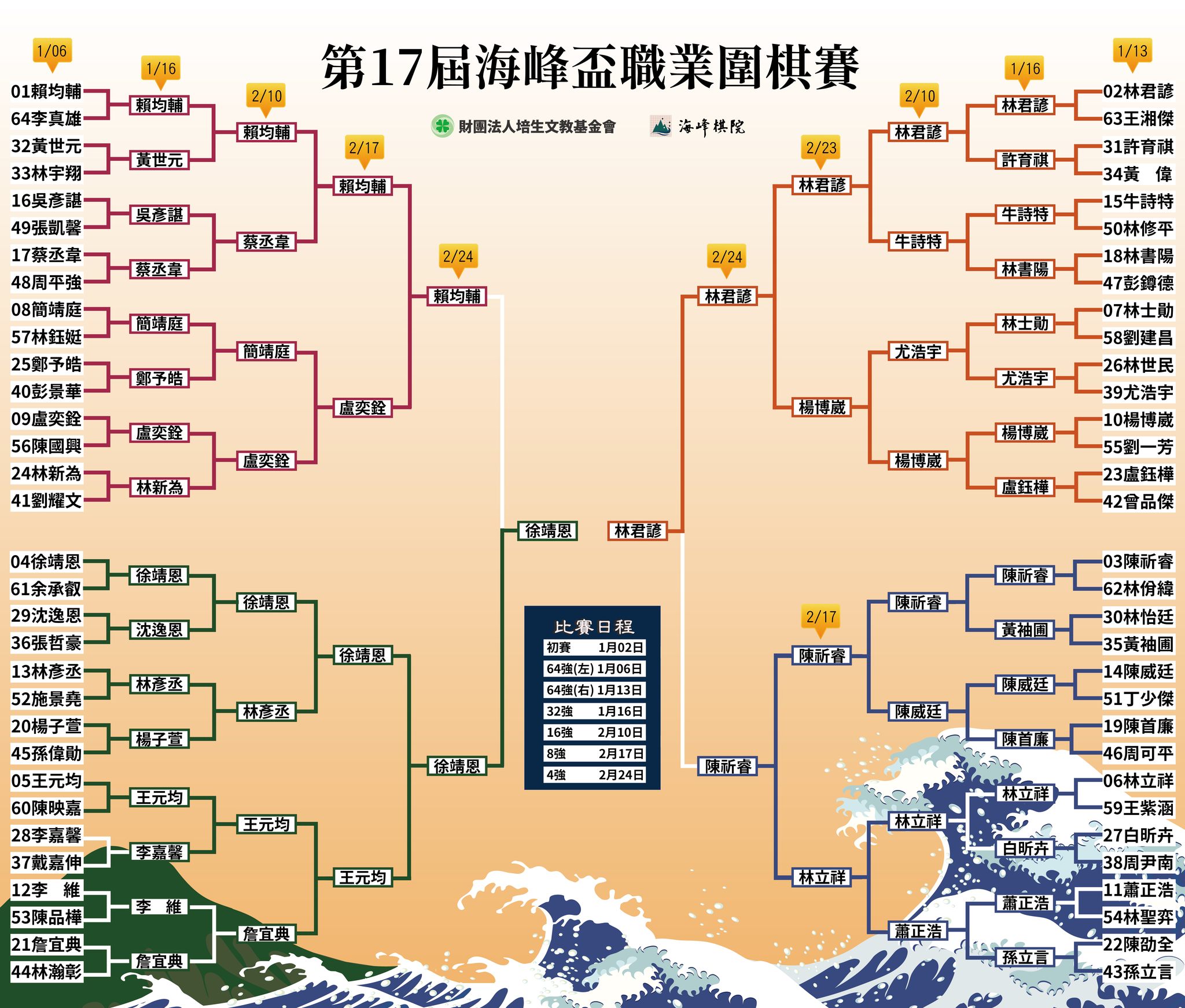 林君諺1997年出生,曾榮膺台灣「名人」、「棋王」、「天元」、「十段」多項頭銜,是台灣當代頂尖棋手之一;徐靖恩2006年出生,17歲時就加冕「快棋爭霸戰」,代表著台灣圍棋界的未來。本屆賽事,二人均連闖五關,躋身決賽。