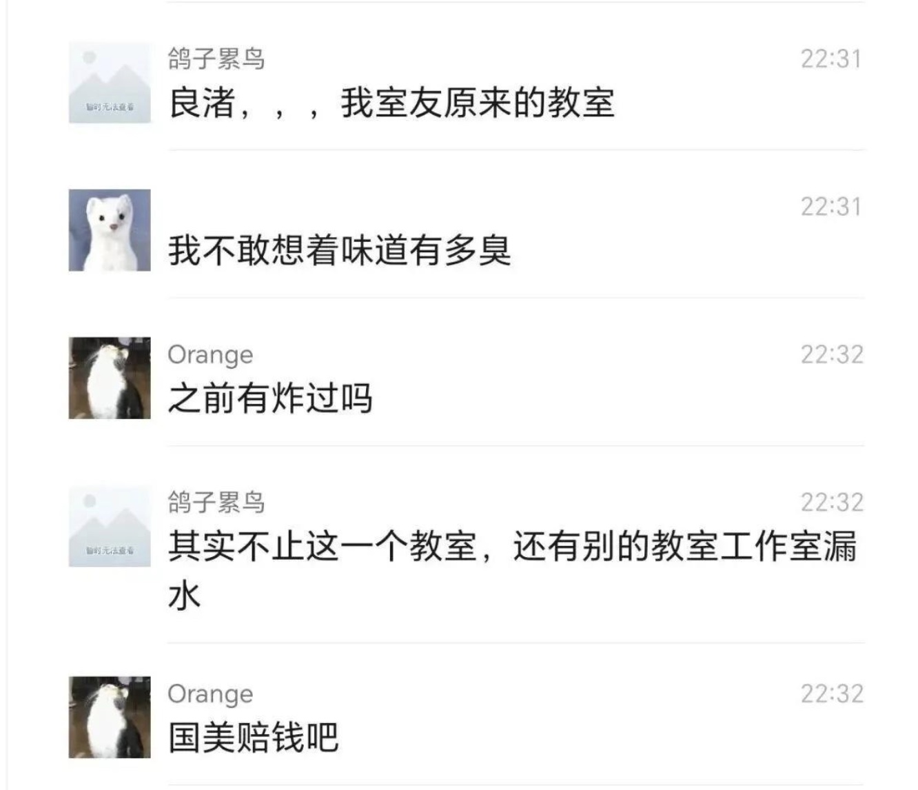 有該校學生透露,「其實不止這一個教室,還有別的工作室也漏水」。