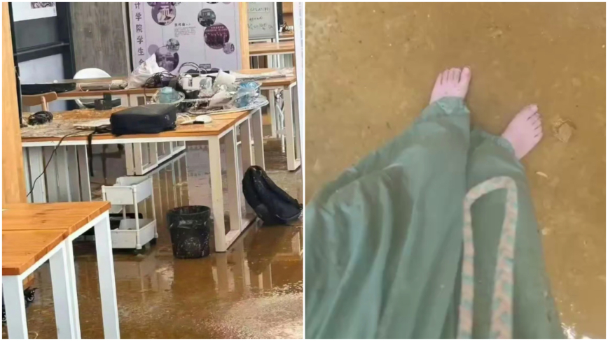 據多家大陸媒體報導,事發9月8日早晨,該學校7號樓教室頂部污水管道突發爆裂,事發時,一名女生獨自在教室做作業,污水混合糞便從其頭頂噴濺而下,瞬間覆蓋桌椅、電腦及地面,女生個人物品(包括電腦、學習資料)被污物損毀,網傳電腦中存有保研相關文件
