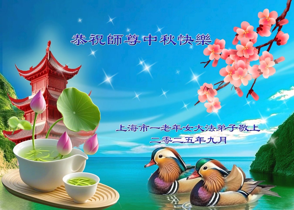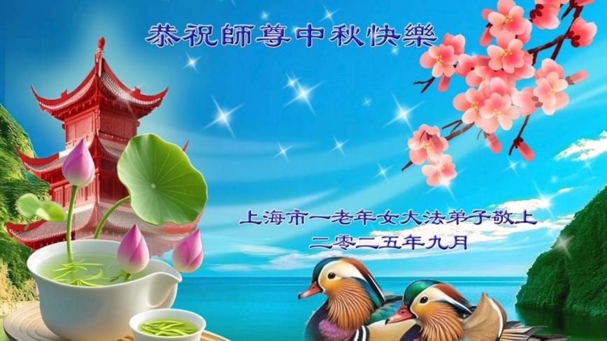 上海一老年女大法弟子恭祝師父中秋節快樂!
