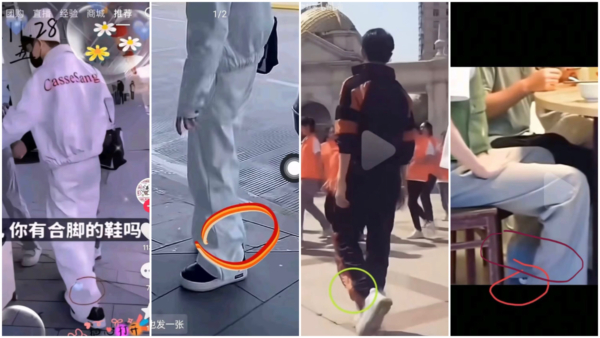 此外,網友也關注一段于朦朧早在大概2021年推廣一款白色皮鞋的視頻,畫面顯示其腳踝處有勒痕。