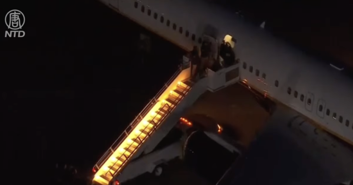 當地時間1月3日下午,載有委內瑞拉總統馬杜羅和他妻子的飛機抵達紐約,馬杜羅戴著腳鐐走下飛機。當天晚些時候,他被直升機運送至紐約布魯克林的大都會拘留中心關押。