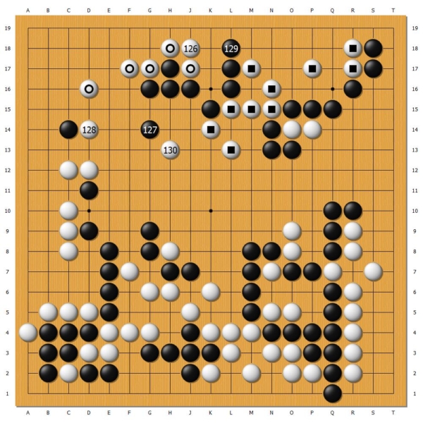 白128手,本可於129扳過,將尚未完全安定的左右兩塊棋連為一體,便高枕無憂。但申旻埈過於追求,還想進攻黑上方孤子,弈得不夠簡明。黑129立,埋下翻盤的伏筆。