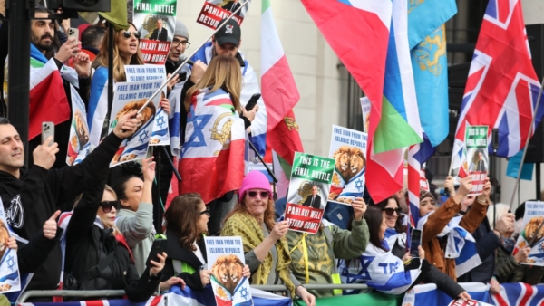 伊朗猶太裔人士尼奧·伯格(Nioh Berg)發帖表示,2月1日,十萬伊朗人聚集在倫敦唐寧街外,呼籲恢復伊朗君主制,並要求英國取締伊朗伊斯蘭革命衛隊,民眾高喊「禮薩·巴列維國王」。