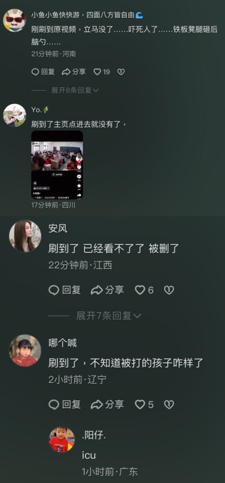 「刷到了,不知道被打的孩子咋樣了。」