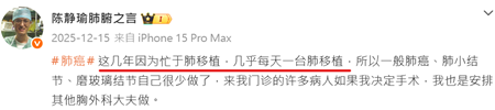 翻查陳靜瑜微博帳號「陳靜瑜肺腑之言」帖子,可見其工作繁忙,經常一天做兩例甚至多例肺移植。