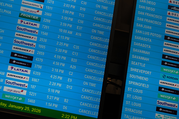 全美超過1.6萬航班取消,機場暫停起降,創下疫情後新紀錄。航空公司陸續宣布26日班次取消,航空運輸大受影響。