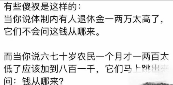 文章說:「從2009年到現在,全國農民基礎養老金最低標準從55元漲到了143元,平均每年漲了5塊5,假設以1000元為目標,還需要155年。 2024年和2025年漲幅最大,分別漲了20元,以此為標準,漲到1000元也需要43年。」