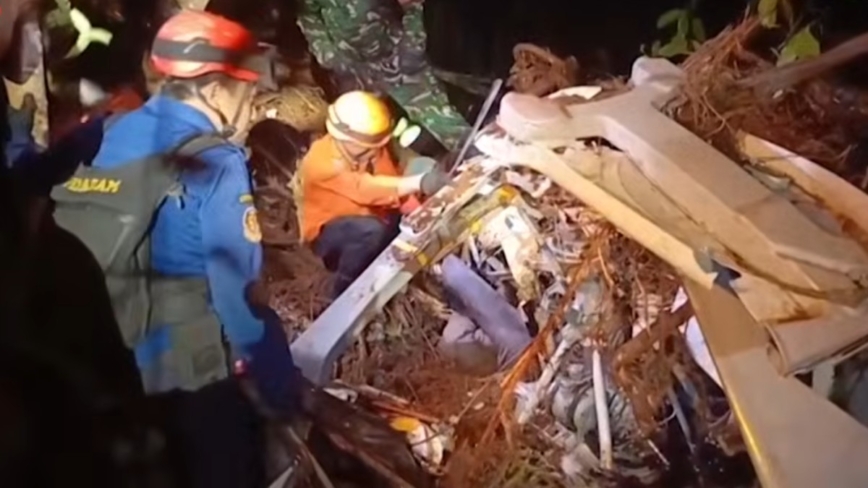 【新唐人北京時間2026年04月17日訊】印尼昨天(4月16日)一架失聯的私人直升機在婆羅洲茂密森林墜毀。交通部今天(17日)證實,機上2名機組人員及6名乘客全數罹難。