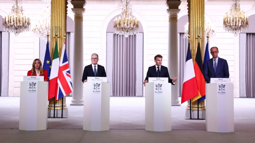 【新唐人北京時間2026年04月18日訊】週五(4月17日)上午,英、法、德等49個國舉行視頻會議。會後四國領導人:法國總統馬克龍、英國首相斯塔默、意大利總理梅洛尼,以及德國總理默茨發表聯合聲明,表示要共同維護霍爾木茲海峽的自由航行。不過,川普總統發文表示「並不需要」。