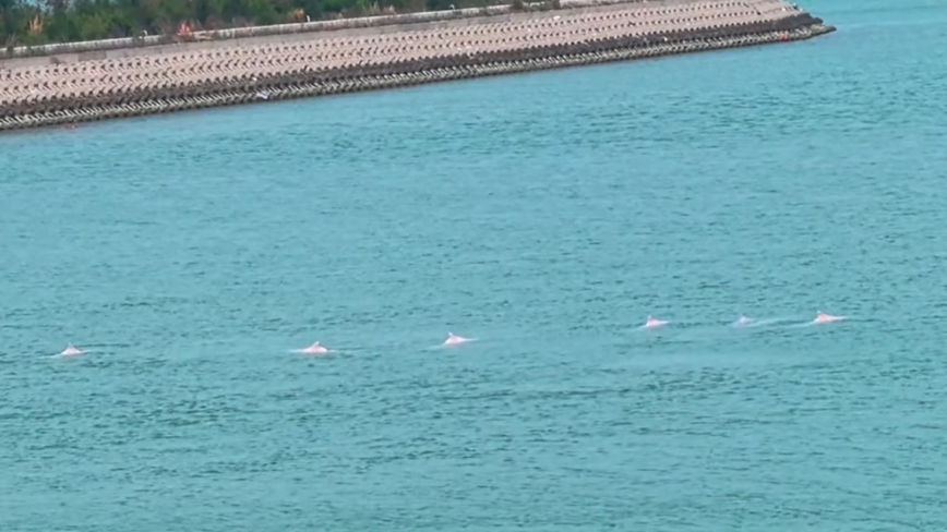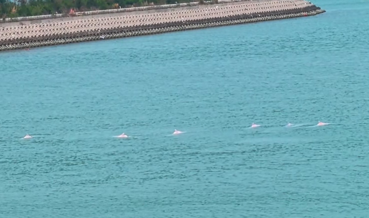 目擊者黃先生表示,「太驚喜了!前不久剛在附近海域見過粉海豚,沒想到它們又來『串門』了。」他用手機記錄了海豚暢游的珍貴畫面。
