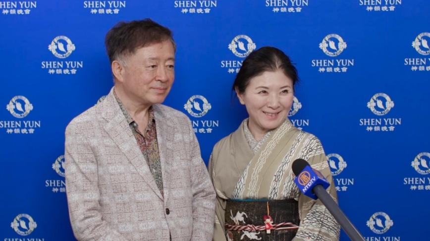 醫院院長、醫學博士山本晴章今天與妻子山本志伸一同前來觀看演出,他們被神韻藝術家精湛的舞藝折服。
