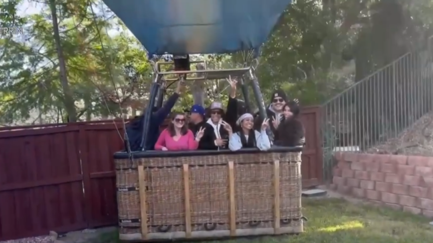 加州特梅庫拉屋主亨特·佩蘭:「嗨,大家好!哈哈哈哈~ 看看這個(熱氣球)!哈哈哈哈~ 哇噢!」
