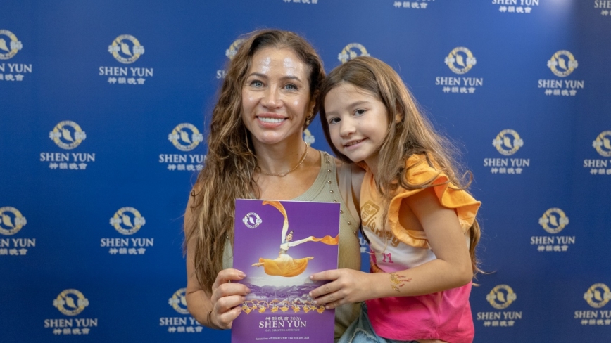 Adabel Guerrero:「我帶女兒蘿拉一起來觀賞神韻。她也想成為舞蹈演員。我非常喜歡帶她來看這樣的演出,讓她學習其它文化中不同類型的舞蹈。這是一場非常精彩的演出。」