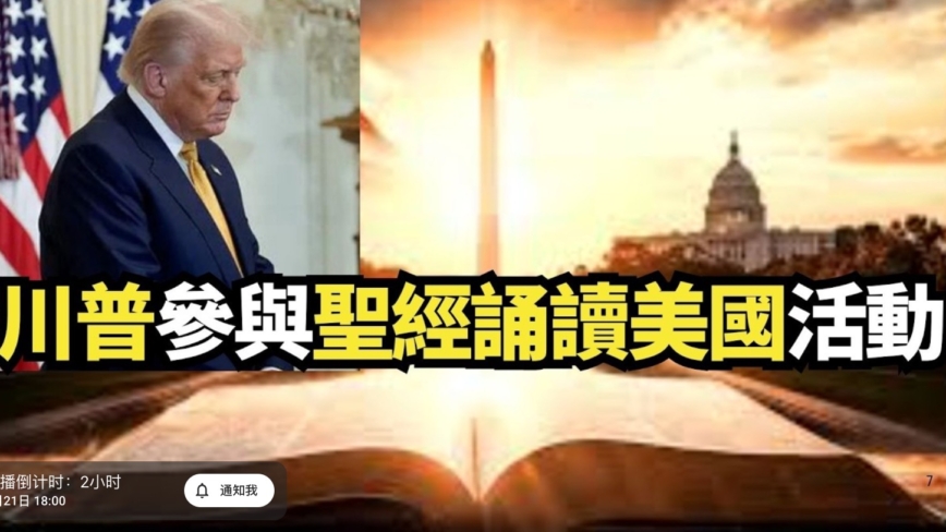 【新唐人北京時間2026年04月22日訊】美東4月21日,美國總統唐納德·川普參與聖經誦讀美國活動。新唐人、大紀元進行網絡直播,即時翻譯字幕。