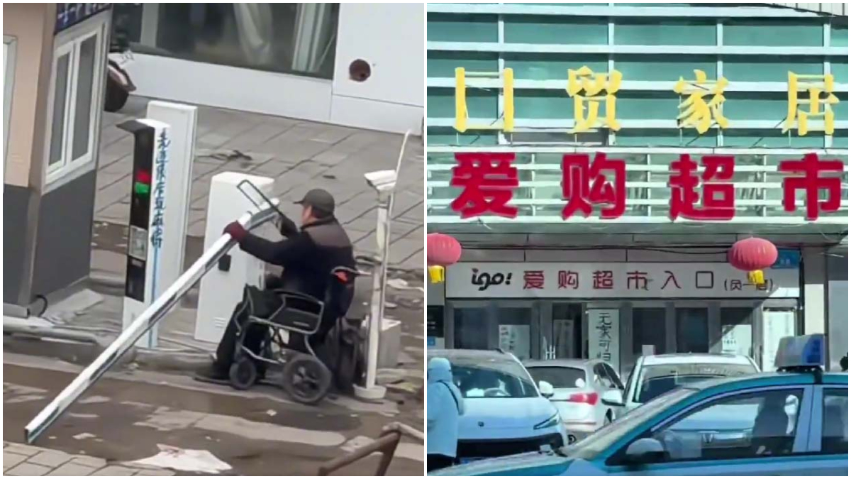 4月以來,大陸社交媒體熱傳視頻顯示,海拉爾一位老人多次坐著輪椅趕到國貿家居商場樓下,用鋸子鋸斷停車場出口的收費杆,然後現場指揮車輛通過,讓車主享受「免費停車」。鋸下的收費杆,他或是扔在地上,或是扛在肩上帶走。