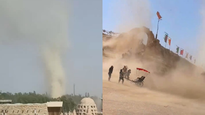 【新唐人北京時間2026年04月27日訊】4月23日,寧夏銀川西夏區鎮北堡遭到龍捲風襲擊,吹起數十米高旋轉的塵柱,畫面相當震撼。