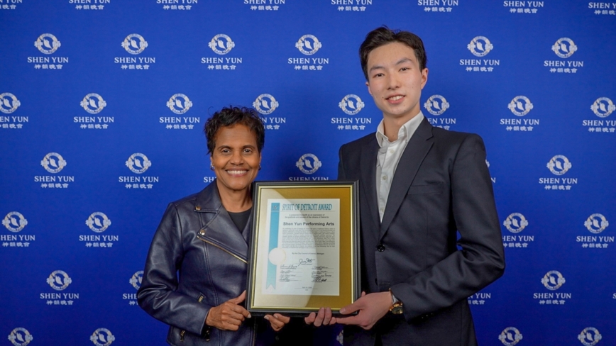 底特律市議員Angela Whitfield Calloway:「這個獎項是由底特律市頒發的,代表我們的市長和整個市議會的九位市議員,我們共同代表著整個底特律市。我們想告訴人們,這是一場不可思議的演出。我們想要表達我們的感謝。非常感謝神韻來到我們的城市——底特律市。」