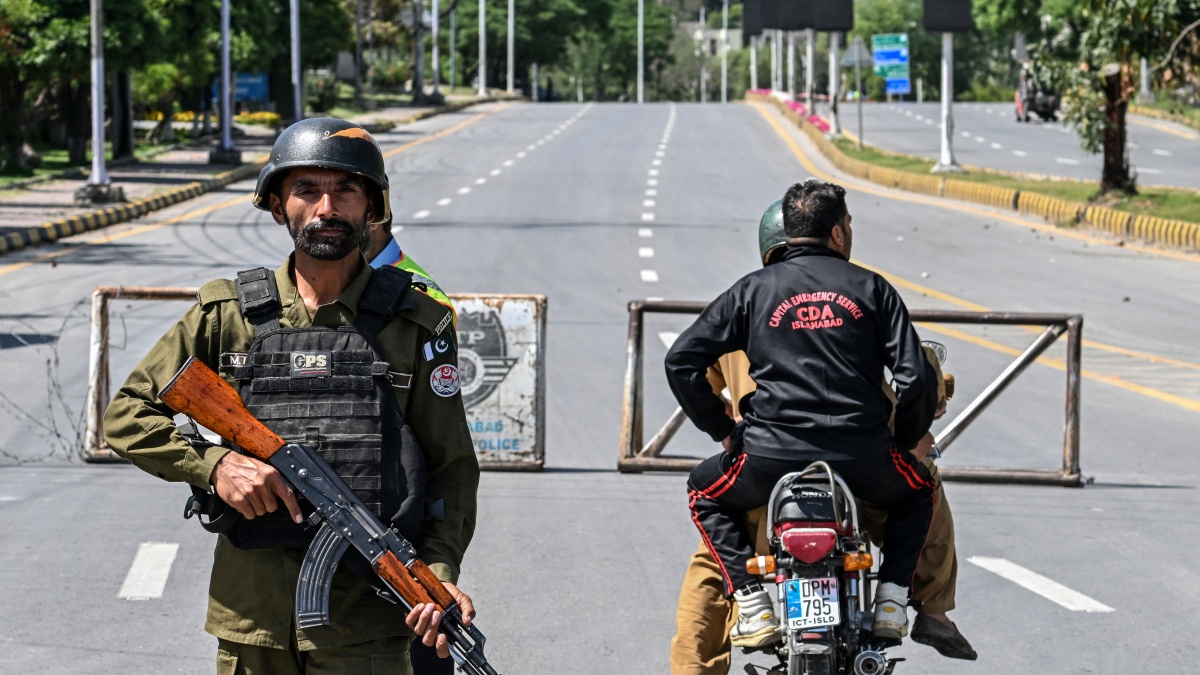 在伊斯蘭堡「紅區」的塞雷納飯店附近,可以看到成捲的鐵絲網和大量警力。 4月11日,美伊首輪會談正是在這裡舉行的。