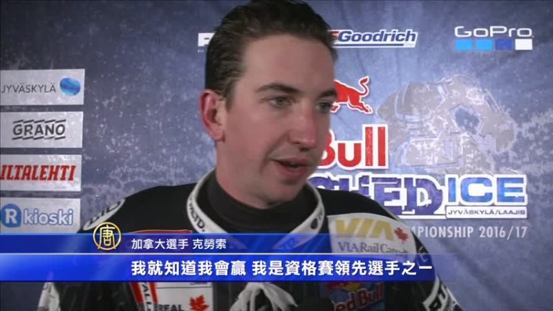 【新唐人2017年01月22日讯】2017年红牛冰上极限竞速世界锦标赛这个周末转战至第2站芬兰,加拿大籍的克劳索挠勇善战、表现非凡,蝉联3年芬兰站的冠军宝座。