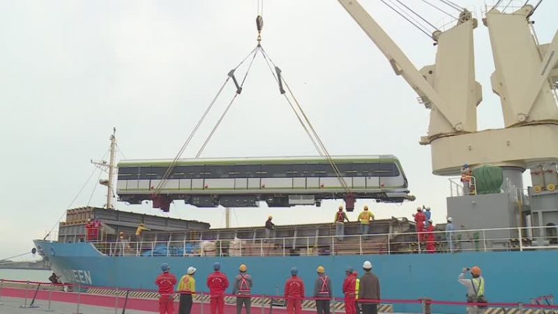 【新唐人2017年02月05日讯】台中捷运绿线土建工程,已经告一段落,委托日本制造的第一批车厢,今天(5日)运抵台中港,台中市长林佳龙率领官员,今天亲自迎接,市长更喊出目标,明年列车要试运转。