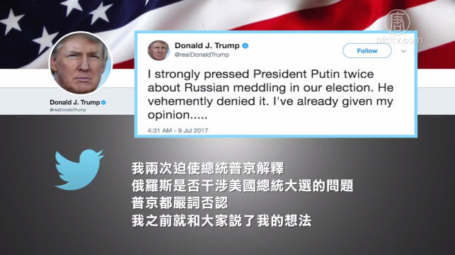 【新唐人2017年07月09日讯】美国总统川普在周日(7月9日),接连发了多条推文,表示在与俄罗斯总统普京会面时,再次提及俄罗斯是否有干涉美国大选的议题。请看详细报导。
