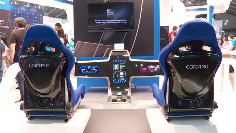 结合平面、凹式等多曲面玻璃,是全球最大玻璃基板厂。康宁透过3D冷弯成形技术,将大猩猩玻璃一体成形,使用在汽车内装,提高车用安全性,通过头部冲击测试的玻璃没有破裂,减少眩光和反光,并以智慧型手机使用者经验,应用在汽车上,更能弹性化设计。