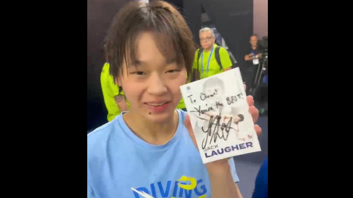 4月4日,世界泳联的官方微博发文表示,全红婵要到了英国男子跳水名将杰克‧劳尔(Jack Laugher)的签名明信片啦,她要到签名照兴奋到搓手。