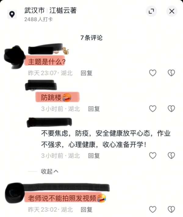 当地网民悲叹,最近武汉太多学生跳楼或跳江了。