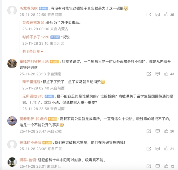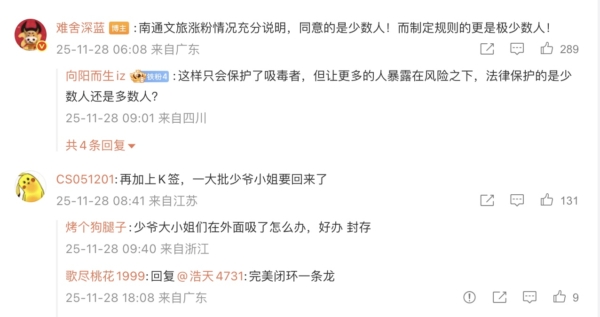 【新唐人北京时间2025年11月30日讯】中共特权体制不断引发民众质疑,近日,中共治安管理新规即将实施,其中“吸毒记录封存”引发关于特权的巨大争议。南通文旅在新闻评论区发了6字评论“哪位少爷吸了”,获得网友共鸣,一夜涨粉逾400万。