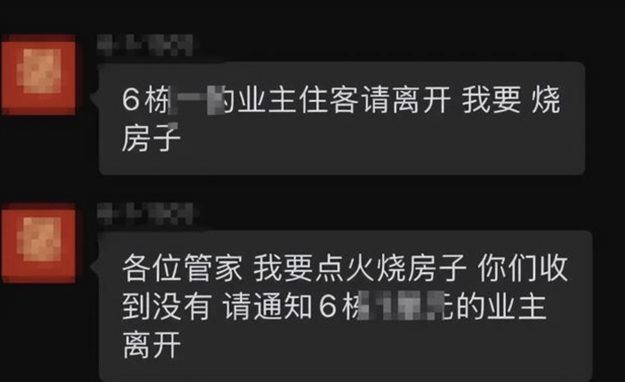 之前,网传一份玺悦湾(南区)业主群聊天记录显示,一名业主突然在业主群发言,称要点火烧房子,请1单元的业主全部离开,有业主在微信群内对其进行劝阻,并联系管家前去沟通制止。