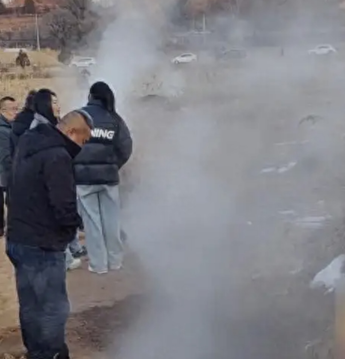 这种地下喷出热水现象并非个例。上个月,山西一村庄也出现类似现象。