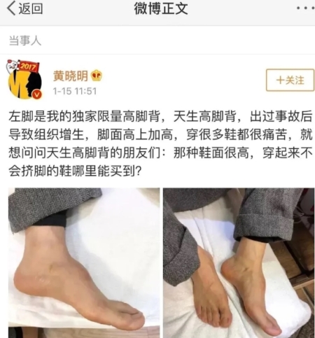 事故发生后,黄晓明的脚被打入6根钢钉固定,其中左脚甚至有脚趾粉碎性骨折。而为了不影响拍摄进度,他在休养约40天就复工,但最终导致伤势留下不可逆后遗症。他描述,如今只要走路时间一长,脚部便会剧烈疼痛,甚至因组织增生,脚背高度明显高于一般人,若鞋子内部空间不足,“连脚都塞不进去”。