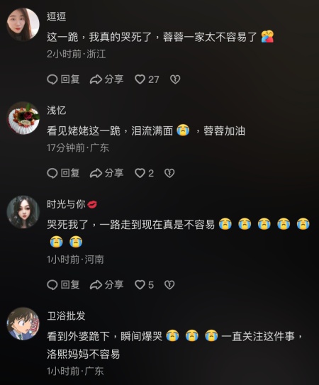 “看到外婆跪下,瞬间爆哭,一直关注这件事,洛熙妈妈不容易。”