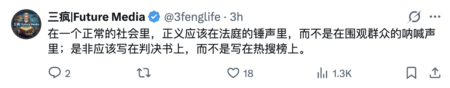 “小洛熙”案开庭,大批民众自发在法院外支持的视频也在X平台引发热议,有网友直言,这起事件恰恰反映出中共法制不健全的问题:“在一个正常的社会里,正义应该在法庭的锤声里,而不是在围观群众的呐喊声里;是非应该写在判决书上,而不是写在热搜榜上。”