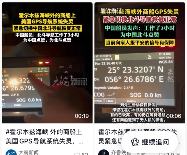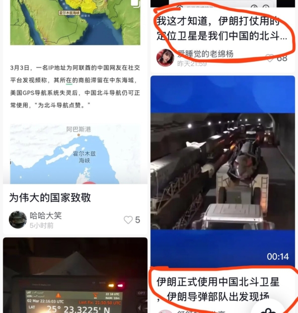 伊朗周边电子信号被干扰后,中共地方党媒和网军趁机大肆造谣宣传,声称“GPS失灵,船只全靠中国北斗导航”,“伊朗导弹也用北斗定位”等等,欺骗缺乏专业知识的中国网民。