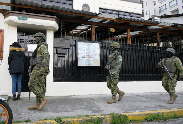 路透社记者说,看到厄瓜多尔军警人员在古巴驻基多大使馆外头巡逻。