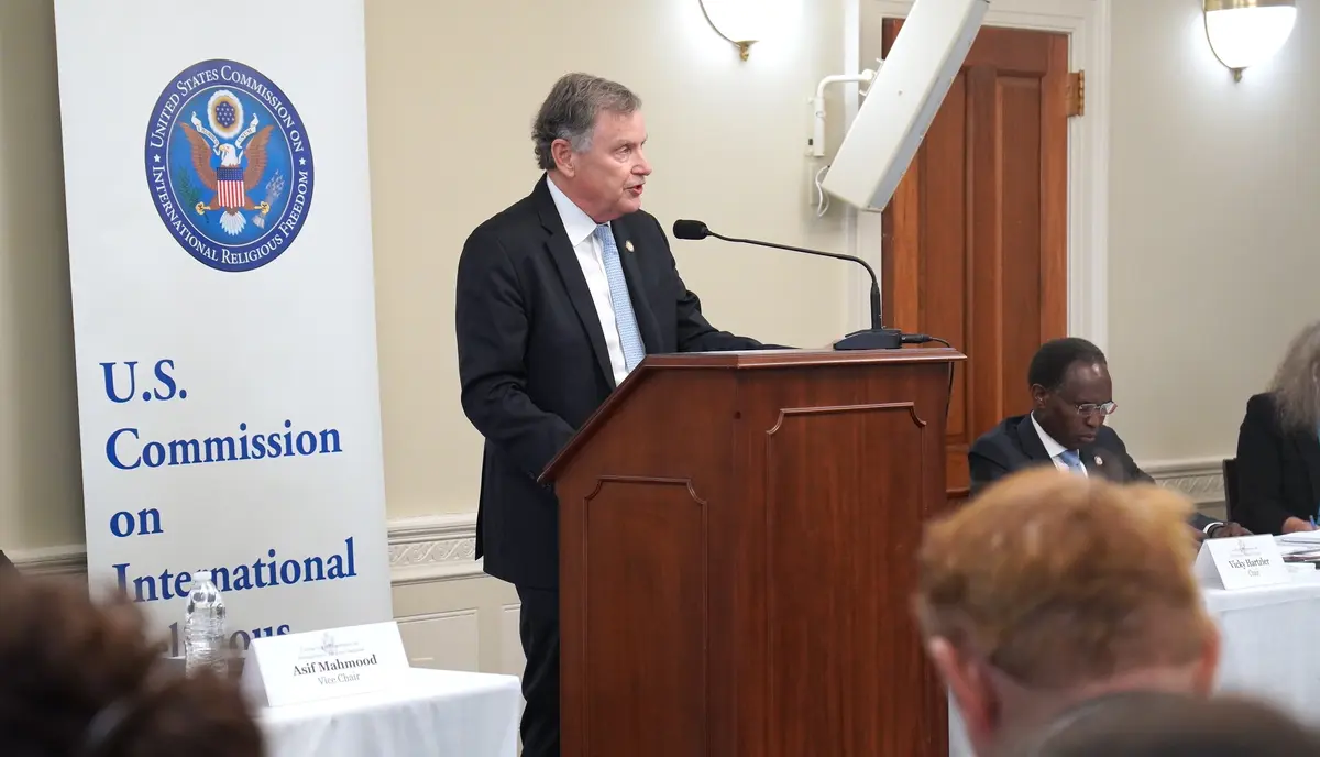 USCIRF委员穆罕默德‧埃尔萨努西(Mohamed Elsanousi)列举了一些因宗教信仰受迫害的例子,他说,“受害者名单不可能全面列举所有的受害者,他们包括许多种信仰、宗教和传统,包括佛教徒、基督徒和法轮功学员,可悲的是这份名单不断增加。”