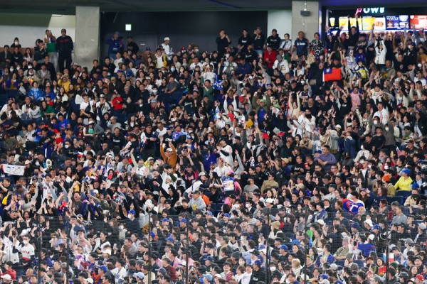 克队交手,台湾队投打发挥大比分超前,球迷开心玩起波浪舞。(中央社)