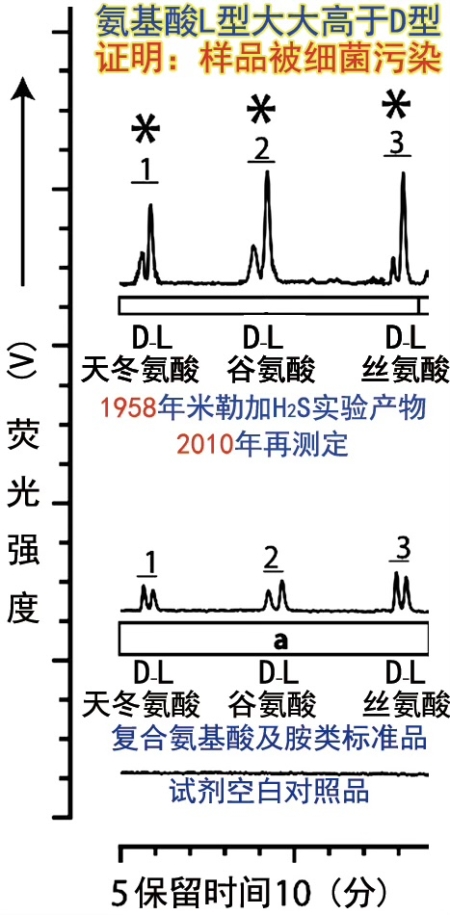 如果是当时污染,米勒实验就没啥大意义了,因为不知道米勒报告的结果,是自然产生的氨基酸,还是来自细菌本身的氨基酸?产量就不准确。如果是储存污染,那后人再检测米勒经典遗存[3][4],也就没意义了。