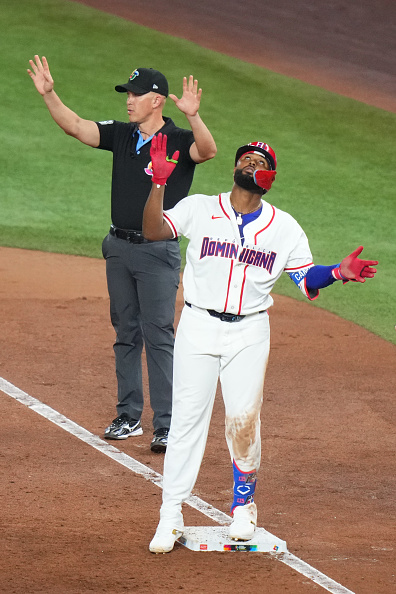 韩国先发投手柳贤振仅投1.2局就被换下场,多明尼加第3局持续猛攻。索托(Juan Soto)安打上垒后,小葛雷诺轰出二垒安打,索托也是从一垒直冲本垒,并用精彩的滑垒技巧再为多明尼加攻下第4分。