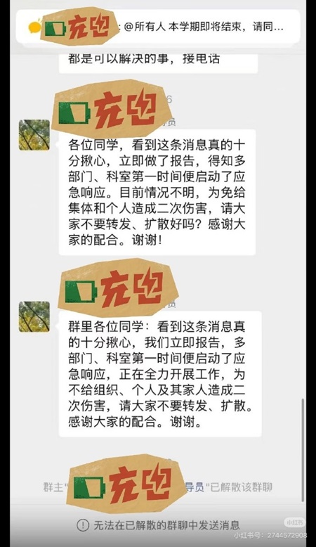 事发后,该聊天群组被解散,并要求大家不要传上述消息。
