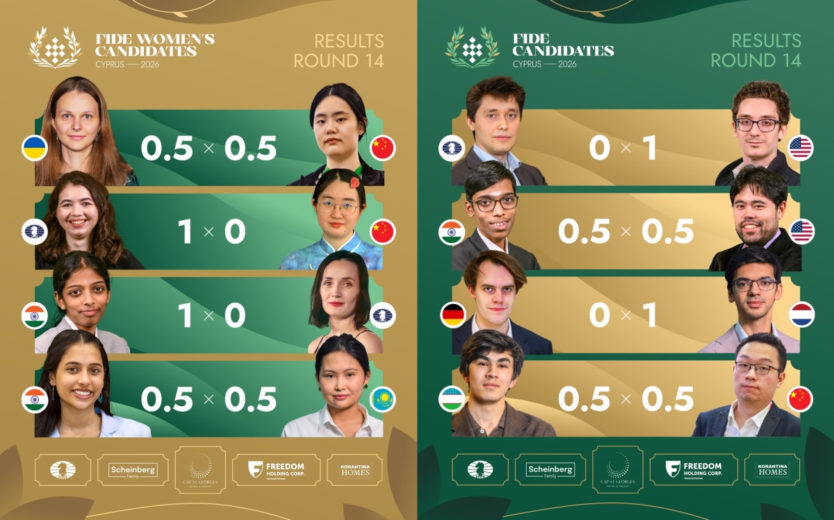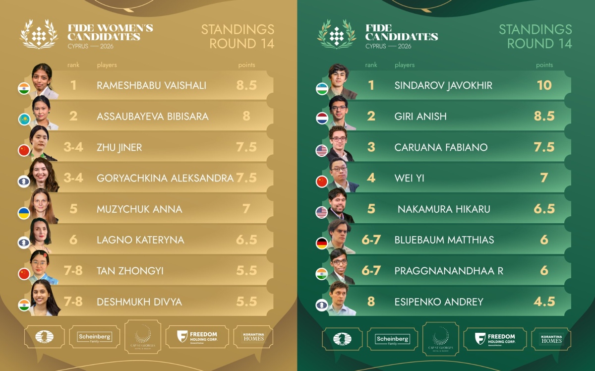 14日第13轮赛前,辛达罗夫(Javokhir Sindarov)和吉里(Anish Giri)分居积分榜前两位。二人在候选人赛倒数第二轮交手,直接关系到冠军归属,因此吸引了众多棋迷的目光。