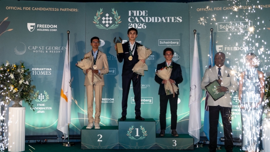 【新唐人北京时间2026年04月15日讯】4月14日和15日,2026年国际棋联(FIDE)候选人赛结束了最后两轮的激战。位居榜首的乌兹别克特级大师辛达罗夫最终以6胜8平的不败战绩,强势夺冠。今年底,他将挑战现任世界冠军、印度天才古克什。