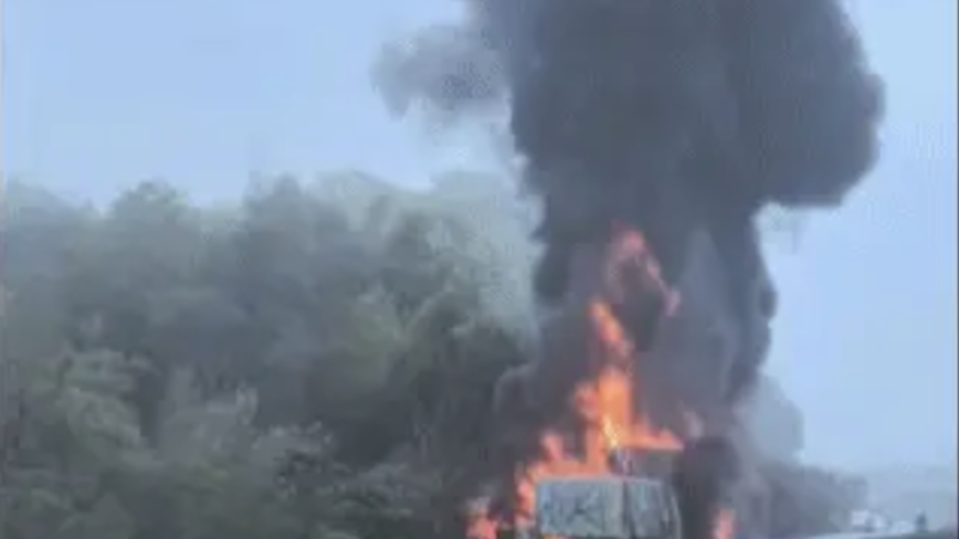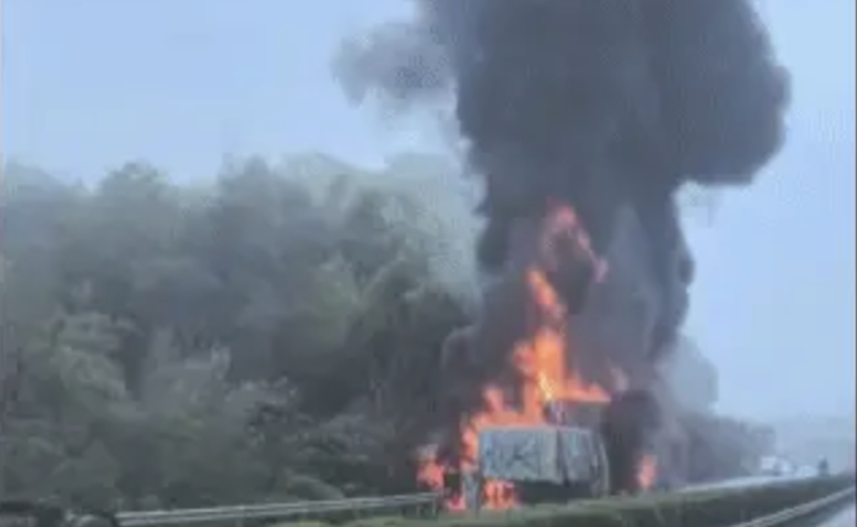 4月16日凌晨,在云南昭通镇雄的高速路上,一辆小货车因追尾自燃,整辆车已经被火焰包围,现场发出爆炸声。
