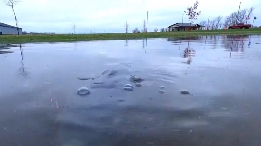 【新唐人北京时间2026年04月18日讯】美国威斯康辛州中部的奥塔加米县,本周遭遇了一场强降雨,导致沃尔夫河的河水泛滥。没想到,在洪水退去之后,河边一处停车场的水洼中,竟然都是肥美的鲟鱼!