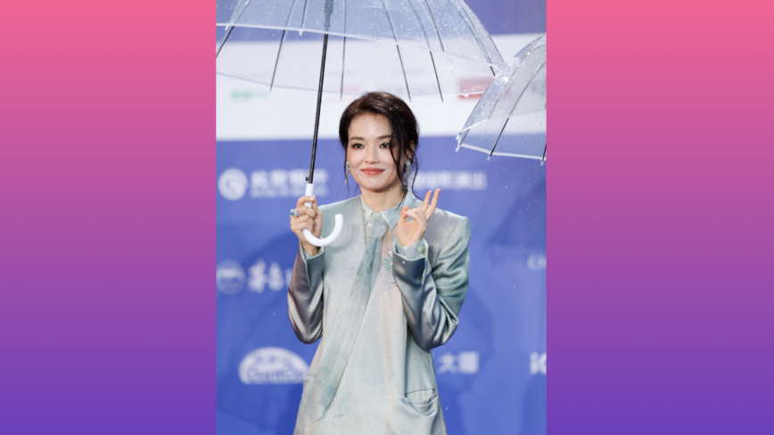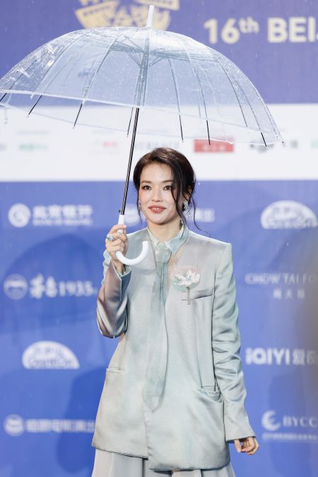 舒淇生日当天,她与逾百艺人云集北京国际电影节开幕式。可惜天公并不作美,全程下雨令一众穿着高定礼服,化着精致妆容的女星走红毯时每人都撑着一把伞,有的提了裙子就没顾上雨伞,显得非常狼狈。特别是女主持人一直站在风雨里迎宾主持,因雨势太大,地上积水不少,一会儿就把她的裙摆染湿。而裙子沾了水一点点往上浸染,最后都湿到膝盖部位,硬生生将裙子整成了渐变色。