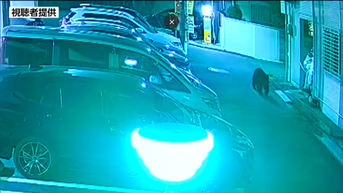据警方和仙台市政府称,自17日晚间以来,该地区多次出现熊的踪迹。 18日晚,仙台市青叶区鸟町一栋公寓的监视器画面显示,一只熊出现在住宅区内。公寓大楼距离设置捕熊笼的地点很近。(点击观看相关视频)