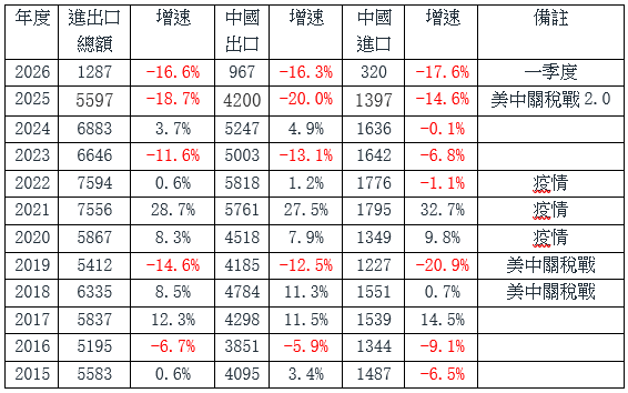 进入2026年,一季度中国对全世界的货物进出口总额增速为18.0%,中国出口增速为14.7%,中国进口增速为22.7%,但中国对美的这三项数据,却分别是-16.6%、-16.3%、-17.6%。两相对比,美中货物贸易脱钩的速度惊人!